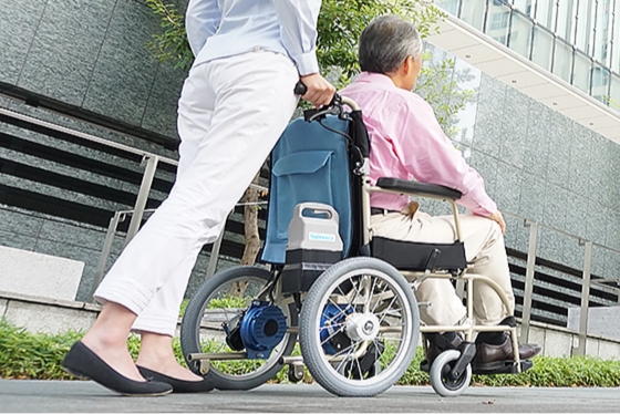 そこで私たちは、「電動」には抵抗がある方も多いという現状を踏まえ、従来の押す・引く操作のまま、軽く動かせるアシスト制御技術(モータ制御技術)を開発しました。